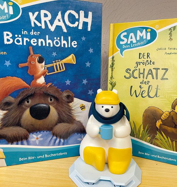 Mit SAMi können Kinder eigenständig in die Welt der Bücher eintauchen und sich zahlreiche Geschichten unendlich oft erzählen lassen. SAMi fördert die Selbstbeschäftigung und Liebe der Kinder zu Büchern. Die Geschichten der SAMi-Bücher regen die Fantasie an und SAMi Lesebär ist kinderleicht zu bedienen. Hierfür wird SAMi an das Buch gesteckt und schon fängt er an, die Geschichte vorzulesen. SAMi erkennt immer genau, auf welcher Seite sich das Kind befindet, und liest die entsprechende Seite vor. Ein Hör- und Bucherlebnis für Kinder ab 3 Jahren.